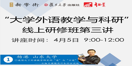 此次研修班由上海外国语大学博士、山东大学博士后杨港老师主讲,主题为“疫情之下外语教学研究的变与不变---从相关课题设计与撰写谈起”,包含三部分内容:(1)总结并反思外语课程在线教学实践,寻找疫情之下教学和研究的 “接口”;(2)分析外语教学研究趋向,概括研究热点,提出值得重点关注的研究话题;(3)梳理相关课题设计和论证思路,结合实例详细介绍课题申请书写作方略,并归纳期中常见问题。
