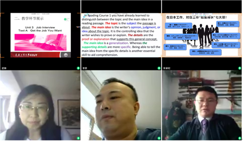 (通讯员:卢迪 迟晓君)疫情难阻勤学志,云端师心深情涌。4月22日下午1点,pg娱乐电子游戏官网入口首届网络教学大赛于线上拉开帷幕。学院党委书记尤海涛、院长彭又新“线上”出席,比赛由副院长周爽主持,学院共有来自英语系、日语系、俄语系、大外部的9名教师参加了比赛,外语学院全体教师全程“云端”参与、观摩了此次比赛。