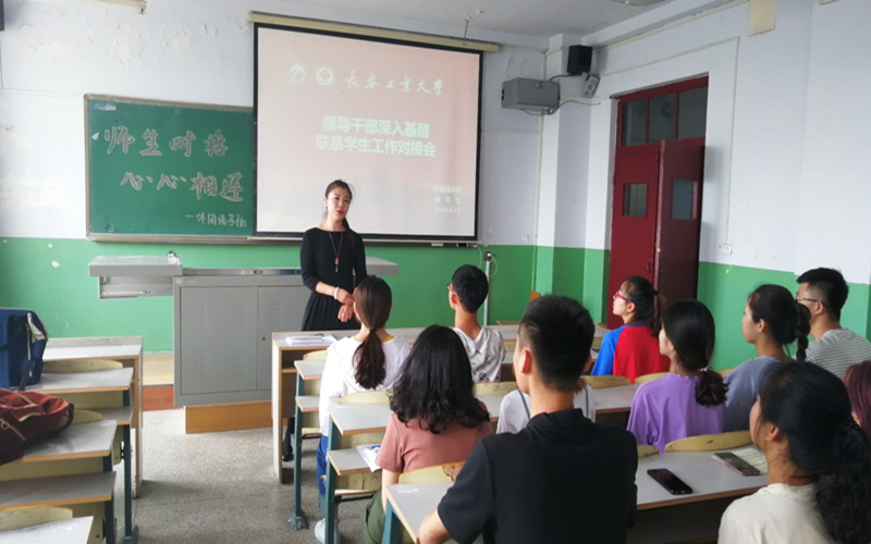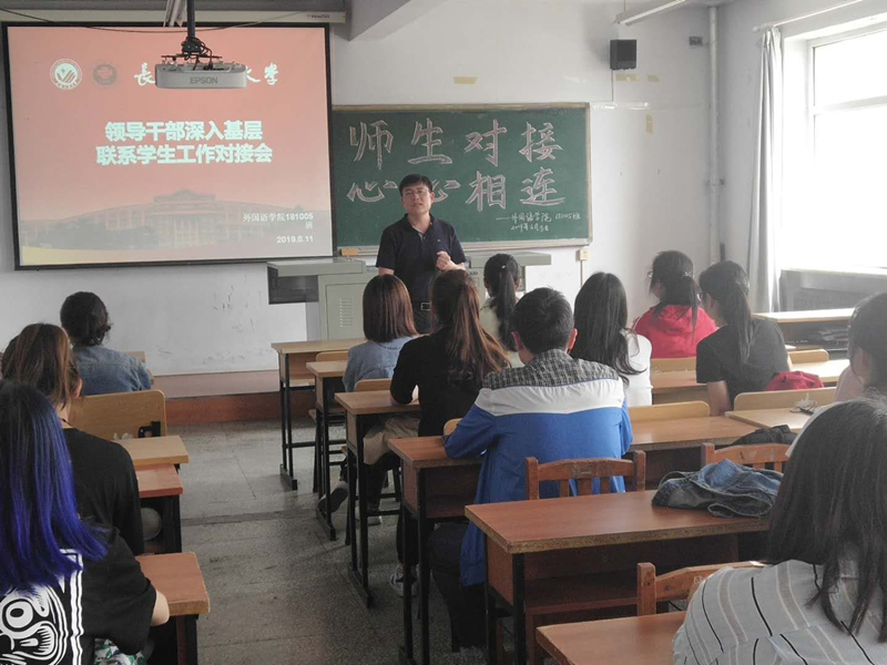 2019年6月11日,为深入贯彻落实习近平总书记在高校思想政治工作会议上的讲话精神、全国教育大会精神和中央31号文件精神,按照学校党委《关于加强和改进高校领导干部深入基层联系学生工作的通知》精神,学校党委副书记李雁冰、学生工作部部长周文军、研究生工作部部长范琳琳、学生工作部副部长肖永辉、大学生心理健康与咨询管理中心主任张丽波、学生工作部宿舍管理科科长王占吉以及pg娱乐电子游戏官网入口班子成员和科级以上领导干部与pg娱乐电子游戏官网入口基层班级对接,着力构建“三全育人”思想政治工作体系。