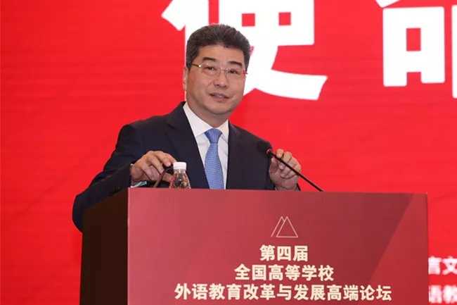 全国高等学校外语教育改革与发展高端论坛已经举办至第四届。本届论坛由北京外国语大学、教育部高等学校外国语言文学类专业教学指导委员会与教育部高等学校大学外语教学指导委员会联合主办,特邀上海外国语大学与大连外国语大学协办,委托北京外国语大学中国外语与教育研究中心、北京外国语大学中国外语测评中心和外语教学与研究出版社共同承办。论坛上更是邀请了教育部高等教育司吴岩司长做了“识变 应变 求变---新使命 大格局 新文科 大外语”的报告。吴岩司长指出,高等外语教育发展要超前识变、积极应变、主动求变,着力培养“一精多会”、“一专多能”的高素质国际化复合型人才。