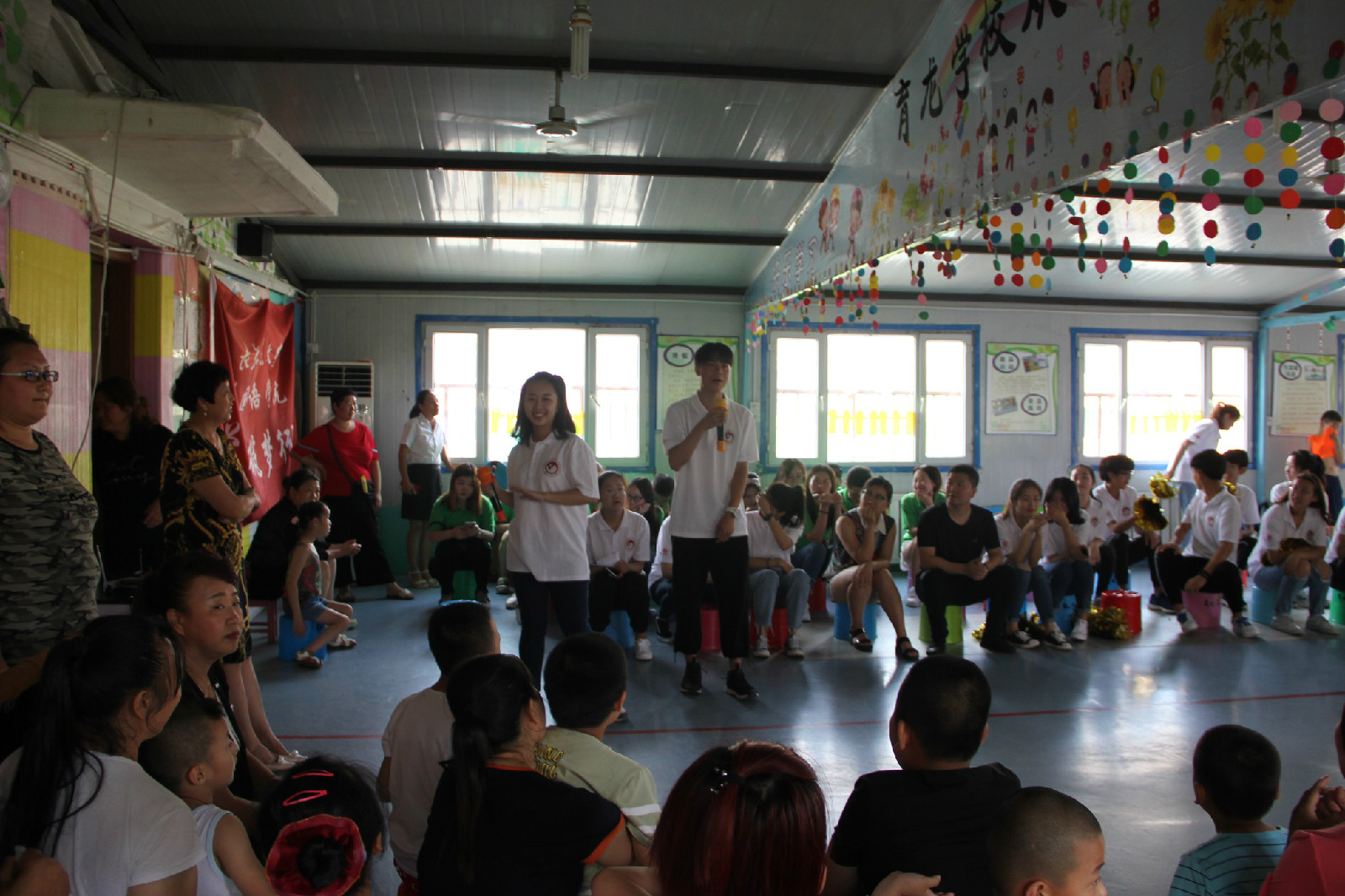 首先育龙特殊儿童康复学校校长向小朋友和家长们介绍了本次社会实践活动的基本情况,并代表学校对志愿者们的到来表达了热烈的欢迎和感谢,随后学校的小朋友们表演了歌舞《最美的光》和《宝贝宝贝》正式拉开了此次活动的帷幕,pg娱乐志愿者同学们现场表演了歌曲《Decision》、《小酒窝》以及欢快的啦啦操舞蹈,现场小朋友和同学们一起开心的互动起来,全场掌声不断,现场气氛热烈而欢快,节目表演后,进行了爱心捐赠活动,赵海涛老师代表学院捐赠给孩子们一些体育用品,希望他们能健康快乐地成长;最后,赵海涛老师发表讲话,对育龙学校为同学们提供这次宝贵的社会实践机会表达了衷心的感谢,并希望以此次活动为契机加深两校合作,建立长期的支援服务关系,并向孩子们表达了衷心的祝愿。