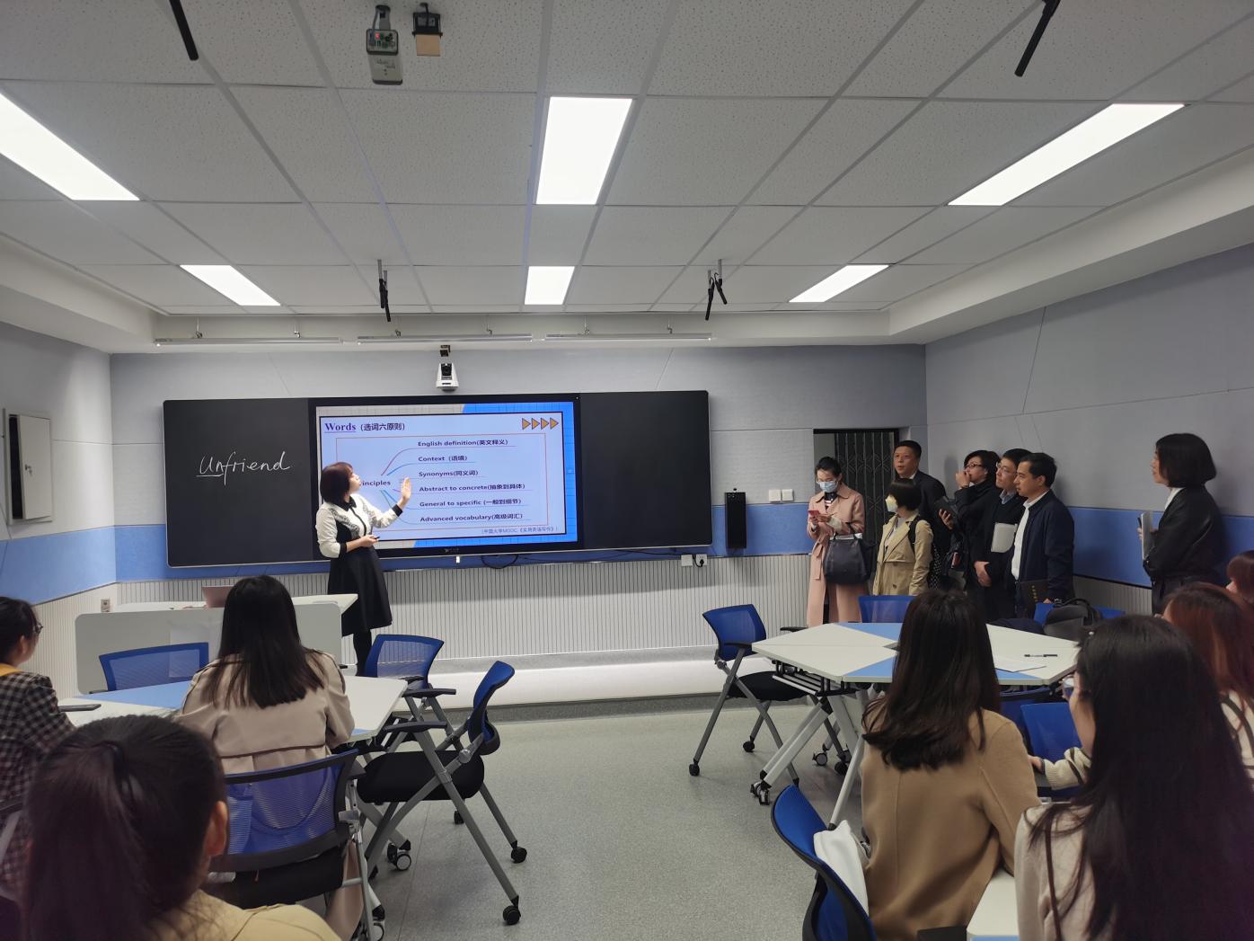 期间不少校领导和老师莅临《大学英语写作课》的现场进行观摩,李秀文老师活力四射、激情澎湃的智慧授课,为各位领导和老师留下了深刻的印象。