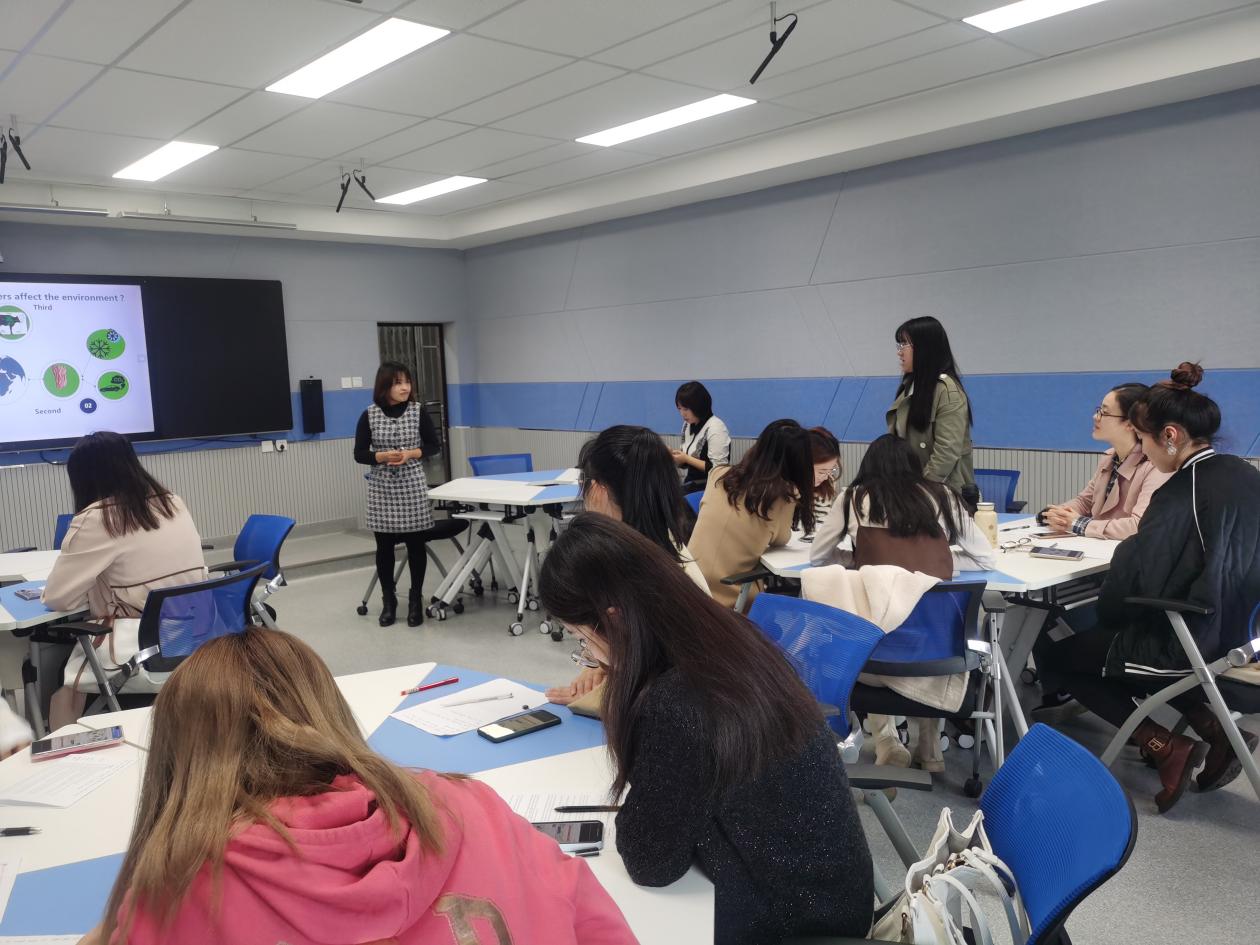 第二场智慧教室观摩课是由公共外语教学部班明霞老师带来的《大学英语视听说》课程,班老师在课中灵活穿插了多个短视频微课,使学生们在不知不觉中对于学习目标产生了一个全方位的立体认识,再结合课堂随机问卷调查反馈学生们的学习效果。
