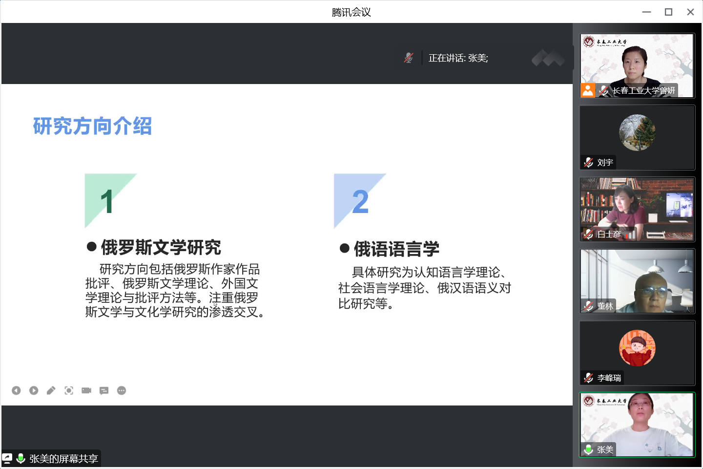 随后,张美进行了俄语语言文学方向的说明。主要从专业介绍、招生指南、题型介绍三个方面对俄语语言文学方向的发展历史、导师团队、课程体系、研究方向、就业前景、赴俄留学项目、招生计划、题型设置等相关问题进行了详细地介绍,在过程中强调了读研对于人生的意义以及报考pg娱乐电子游戏官网入口研究生的优势。她希望各位考生基于自身情况有针对性地制定复习方案,注重专业基础语言能力和语言素养地提升。