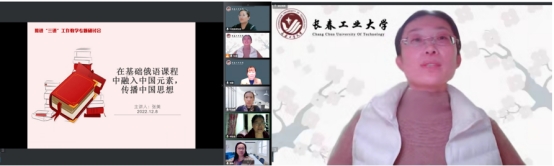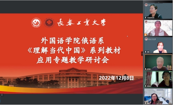本网讯(通讯员 张微)为全面贯彻党的二十大精神和深入习近平总书记关于教育的重要论述,充分发挥外国语言优势,传播好中国声音,2022年12月8日,pg娱乐电子游戏官网入口俄语系《理解当代中国》系列教材教学研讨会以线上会议方式举行。《理解当代中国》系列教材由外语教学与研究出版社出版,涵盖英语、俄语、日语等9个外语语种及国际中文,帮助学生了解中国特色话语体系,提高向国际社会讲好中国故事的能力。