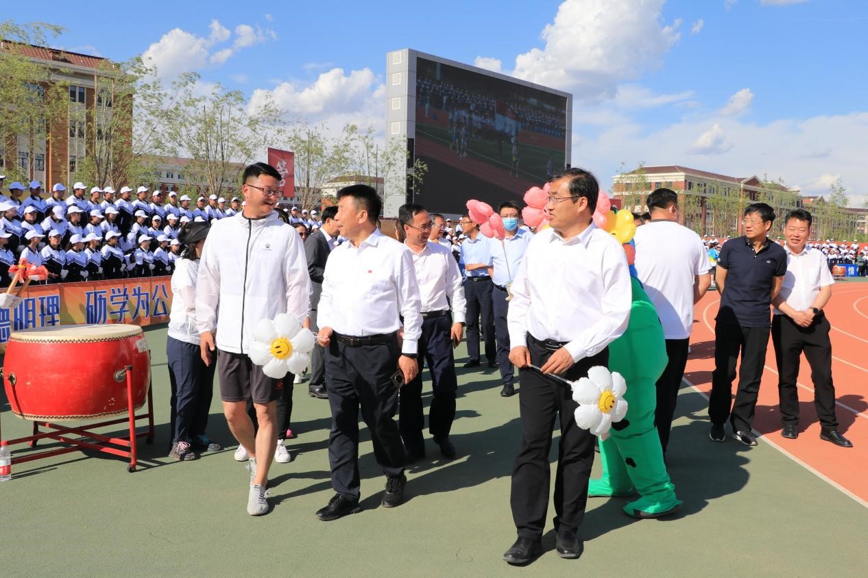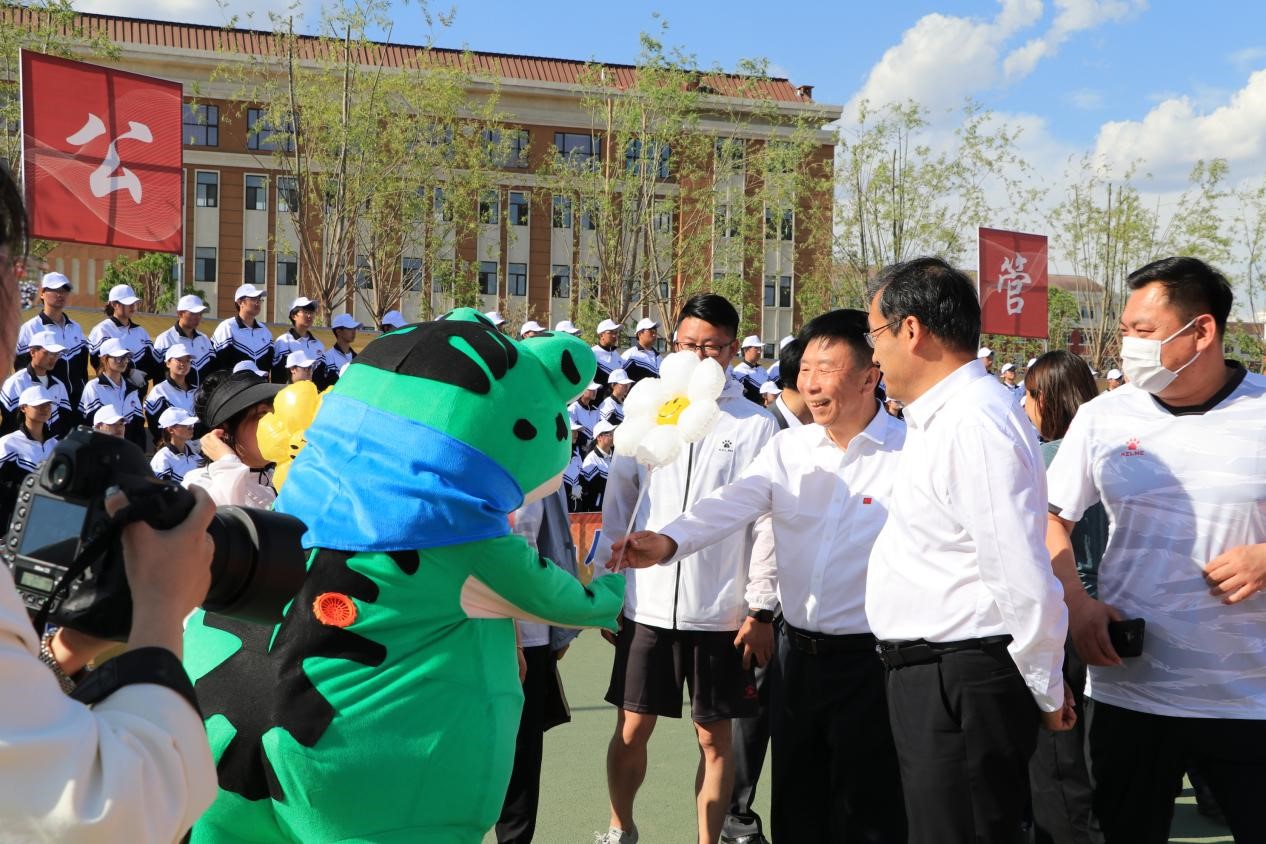 运动会正式开幕,校党委书记孙长智、校长张明耀及其他相关部门领导亲临现场,来到pg娱乐 表达亲切慰问和深切的希冀,并与同学们进行了友好交流和互动。