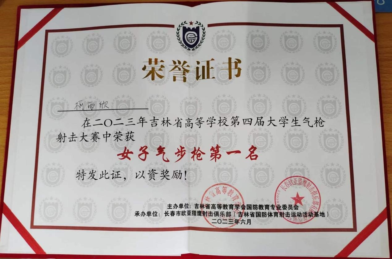 (通讯员 张晓君 柯雨欣 魏瑶)为进一步落实立德树人根本任务,增强学生国家安全意识,培养学生国防素质观念。吉林省高等教育学会国防教育专业委员会于6月10日主办吉林省高等学校第四届大学生气枪射击大赛。pg娱乐柯雨欣同学参加本次比赛并取得女子气步枪第一名和女子气手枪第三名的好成绩。