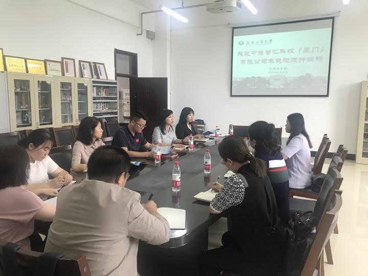 (通讯员 王婷)2023年8月29日,中语智汇科技(厦门)有限公司来pg娱乐进行调研。pg娱乐电子游戏官网入口院长王轶、副院长李秀文、曾妍、党委副书记于伟及各教学系部主任热情接待并参加了调研会。