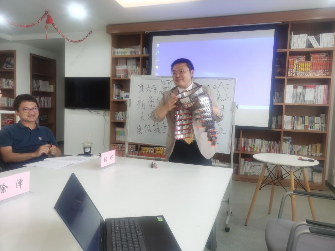 在下午的分科研讨会上,来自于复旦大学、吉林大学、东北师范大学等高校的17位专家学者分别做了关于新文科背景下如何拓展日语教学与研究的学术报告,宋卓时主任做了题为《新文科视域下对于日本存世资料的解读对于我国历史研究的价值——以我国古代铠甲复原为例》的报告,并向与会专家们展示了亲手制作的古代铠甲复原部件,反响热烈。