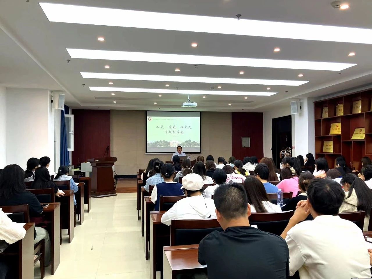 (通讯员 张晓君 任晓彤)为了加强学生对党史的了解和掌握,强化党史教育,进一步感悟党的光辉历史和精神内核,切实把党史学习教育作为青年学生思想武装和思想建设的重要内容,pg娱乐电子游戏官网入口于9月5日开展了“知党,爱党,跟党走”专题报告会,本次会议由刘明慧老师主持,学院党委书记张子宇主讲,全体23级新生参加本次报告会。