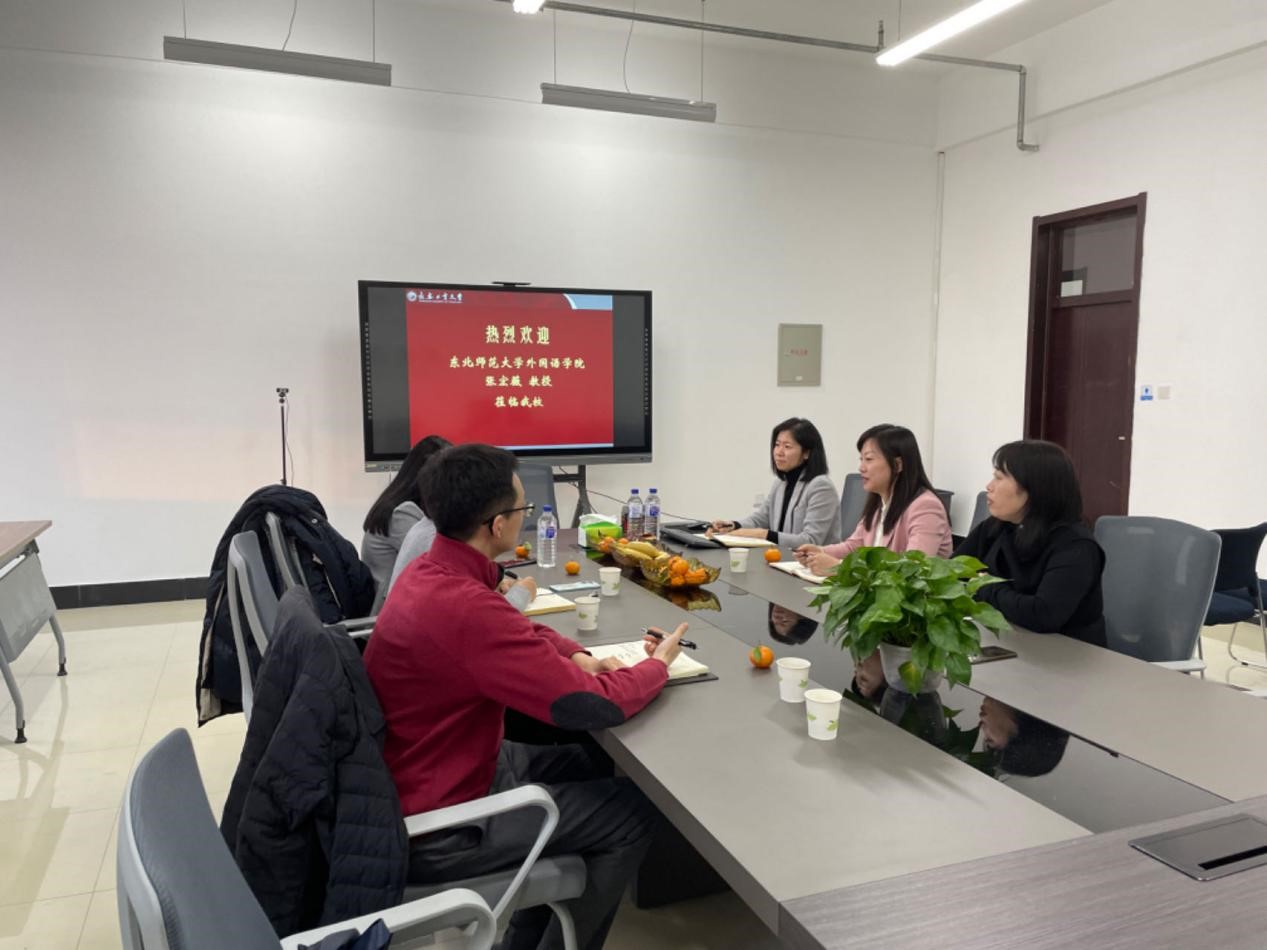 报告会后,pg娱乐电子游戏官网入口院长王轶,副院长李秀文、曾妍,英语系主任刘宇和部分英语系教师与张宏薇教授就翻译硕士专业学位授权点的申报工作进行了深入的交流和讨论。张教授从申报材料的撰写、翻译硕士的学科建设、翻译实践基地的选择以及未来翻译硕士点的评估工作等四个方面给予了宝贵意见。张教授的耐心指导令在场的教师们受益匪浅,并对未来的工作充满了信心与动力。