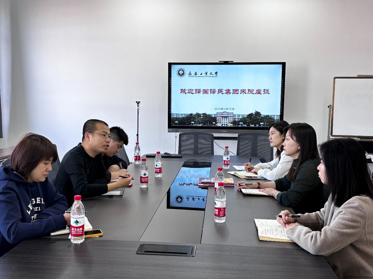 本网讯(通讯员 张晓君)3月26日上午,译国译民翻译服务有限公司代表一行来pg娱乐进行访问交流,pg娱乐电子游戏官网入口院长王轶、副院长曾妍、院团委书记张晓君进行接待,双方进行座谈。