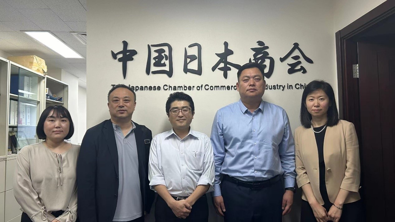 随后,走访团队来到中国日本商会。中国日本商会旨在协助会员顺利开展业务,并通过经济交流活动,促进日中友好关系,拥有松下、佳能、丰田汽车、资生堂丽源、日本航空等数百家会员企业。秘书长森挙一介绍了在中国的日本企业人才需求状况和每年4月在北京主办的“中日企业联合招聘会”。张子宇重点介绍了学院的人才培养和学生就业情况。森挙一强调培养具有跨文化交际能力的商务日语人才的重要性,并提出商会今后将对培养商务日语人才给予一定的支持。双方希望通过此举,实现学生在日资企业或相关机构的实习就业,从而培养出更加优秀的国际化人才,促进中日两国的友好交流与发展。