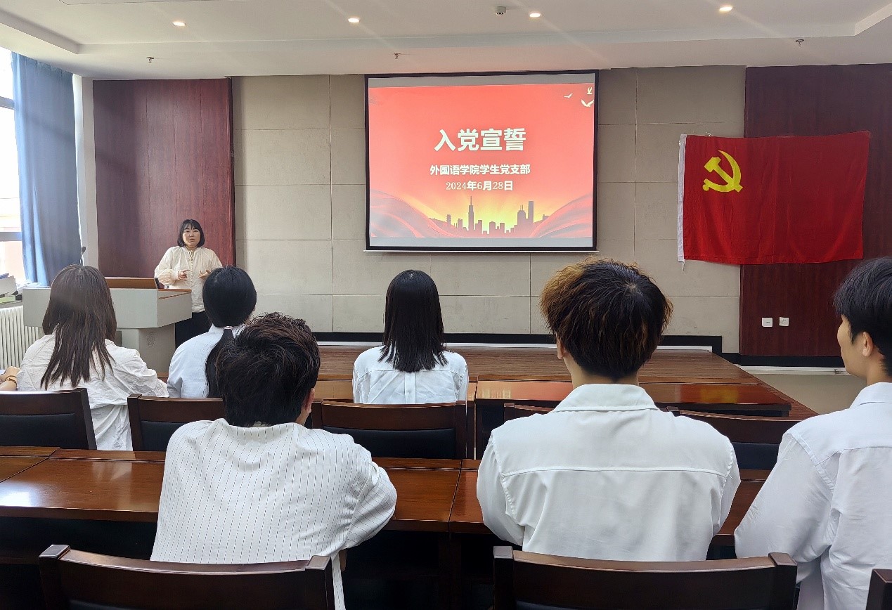 本网讯(通讯员 吴云坤)为庆祝中国共产党成立103周年,弘扬伟大建党精神,深入贯彻落实习近平新时代中国特色社会主义思想和党的二十大精神,进一步巩固和拓展主题教育成果,扎实开展党纪学习教育,pg娱乐电子游戏官网入口党委于6月28日组织新党员入党宣誓、老党员重温入党誓词主题党日活动。活动由学院学生党支部书记刘明慧主持,学生党支部党员参加了宣誓活动。