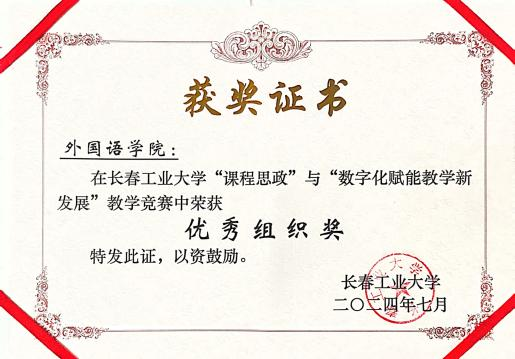 pg娱乐对此高度重视,积极组织学院教师参加,最终由英语系赵艳宇老师、日语系贾鹤老师、俄语系梁梦洁老师代表学院参赛,三位教师于6月17日-6月26日完成了四个专题的线下培训和10学时的线上培训,均以满分的平时成绩进入现场教学评审阶段,pg娱乐凭借出色的组织能力在此次比赛中荣获优秀组织奖。