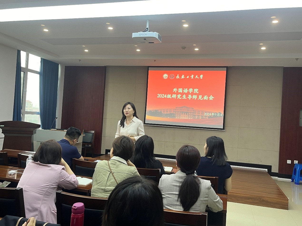 导师见面会后,副院长曾妍、俄语系主任张美、英语系主任刘宇分别给四个专业的研究生开展了“新生入学教育”,详细介绍了各专业的基本情况、课程设置、研究生培养、奖助体系、学生就业等内容,指导研究生确立学习目标,制定个人学习计划。