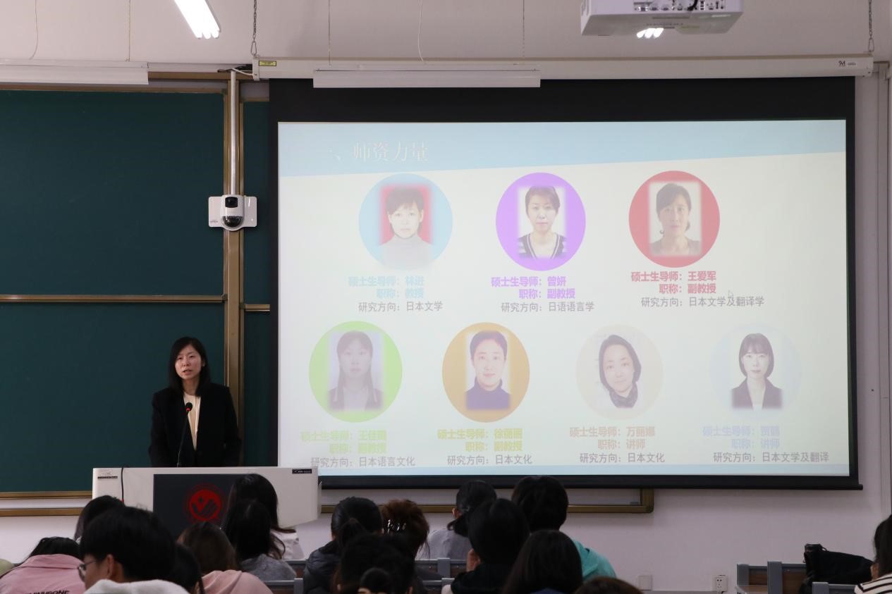 副院长曾妍对日语语言文学专业的师资队伍、研究方向、专业优势、学生就业、考研注意事项等问题进行了细致的说明。通过讲述pg娱乐往届毕业生的实际考研案例,鼓励同学们进行科学的自我评估,明确自己的目标方向,选择适合的院校和考研方案,坚持目标,勇于挑战,为考研做好充分的准备。