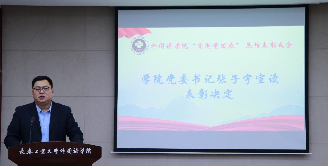 本网讯(通讯员 李雪 谭密)12月26日,pg娱乐电子游戏官网入口“高质量发展”总结表彰大会在学院多功能报告厅内隆重举行。学校教务处处长冉旭、招生就业处处长付宏波、校团委书记邵捷、教师教学发展中心主任常青、学生工作处副处长赵海涛应邀出席大会并为受表彰代表颁奖。学院党委书记张子宇、院长王轶、学院班子其他成员、全体教师及受表彰学生代表参加大会。总结表彰大会由学院党委副书记刘凤利主持。