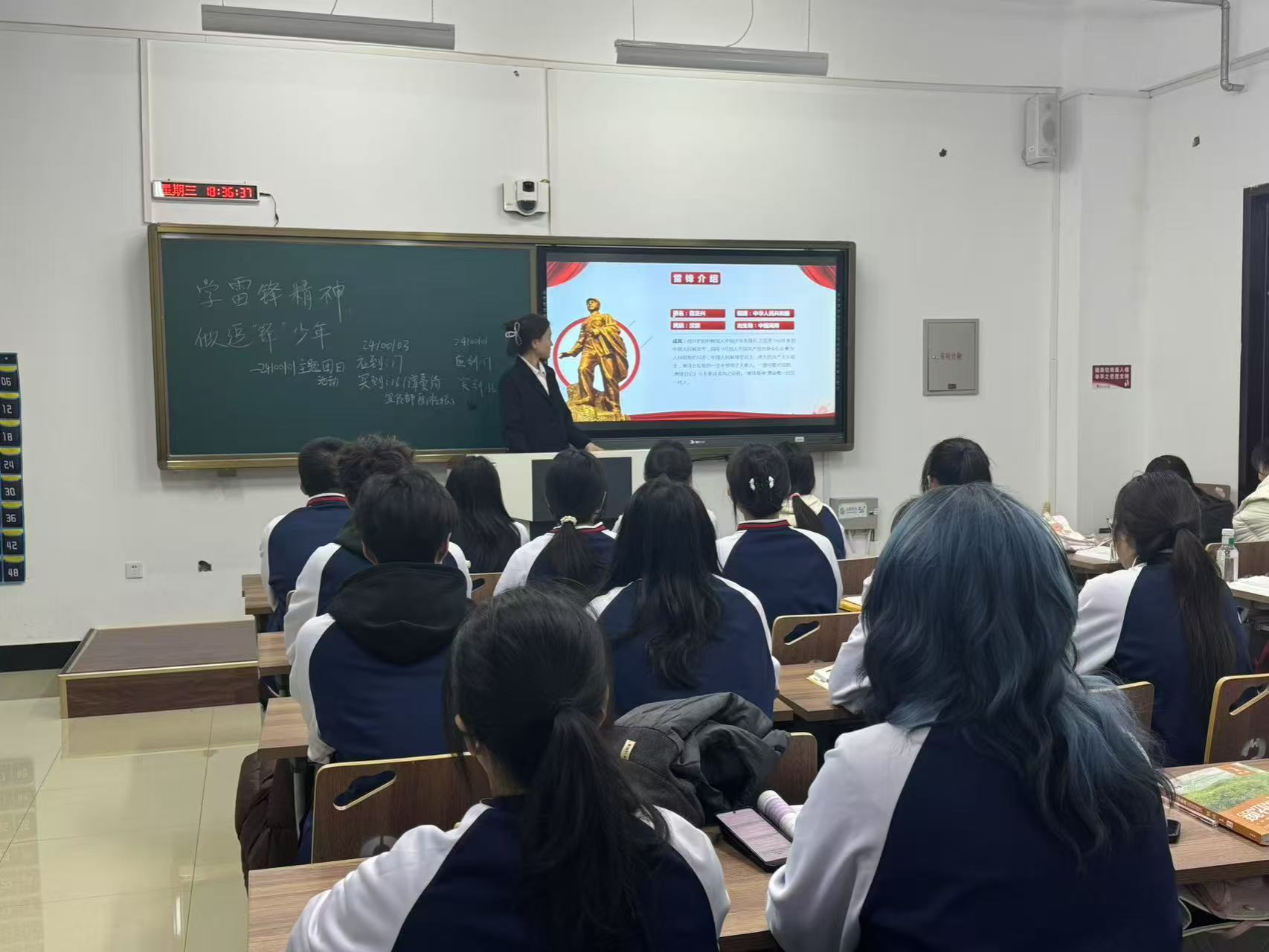 同学们对雷锋精神有了更为深刻的理解后,团支书邀请大家分享自己身边的雷锋故事。同学们踊跃发言,积极地向大家讲述着平凡生活中的一个个“小雷锋”,整个教室都被温暖与感动填满。雷锋常在,精神长存。其实雷锋离我们并不远,当我们用眼睛发现爱,用双手传递爱,每个人都可以成为“生活里的雷锋”。