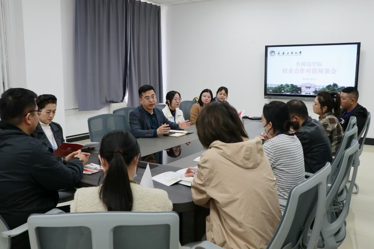 刘凤利对各企业代表的到来表示热烈欢迎,并详细介绍了学院的发展历程、学科建设、专业设置及特色和人才培养情况。他强调,学院始终将校企合作作为推动学院学生实习就业的重要抓手,希望通过此次交流,进一步探索校企合作的新模式、新路径,在学生实习就业方面实现深度合作,为用人单位输送更多高素质、应用型外语人才,同时也为学生提供更广阔的实习就业平台。