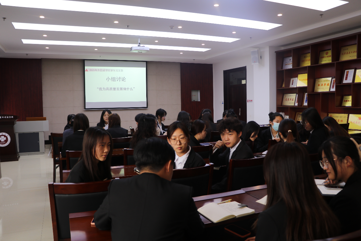 接下来,pg娱乐电子游戏官网入口学生党支部组织全体入党积极分子、发展对象以及学生党员开展小组讨论学习活动,围绕 “我为高质量发展做什么”这一主题进行讨论。