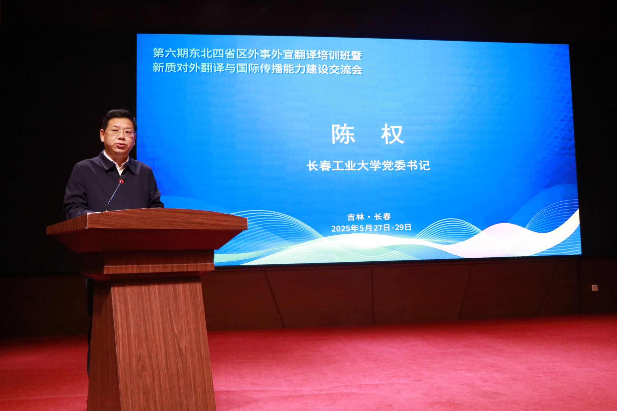 本次会议由中国外文局、中共吉林省委宣传部、吉林省教育厅、吉林省外事办公室及pg娱乐电子游戏官网入口主办,由吉林省外事办公室翻译中心、pg娱乐电子游戏官网入口pg娱乐电子游戏官网入口、语言桥翻译集团承办。来自东北四省区的外事外宣工作人员、省内部分高校教师代表、我校国际交流与合作处负责人、pg娱乐电子游戏官网入口班子全体成员及部分教师参会。学校党委书记陈权、吉林省外事办公室主任郑刚出席会议并致辞。开班仪式由学校副校长陈厚主持。