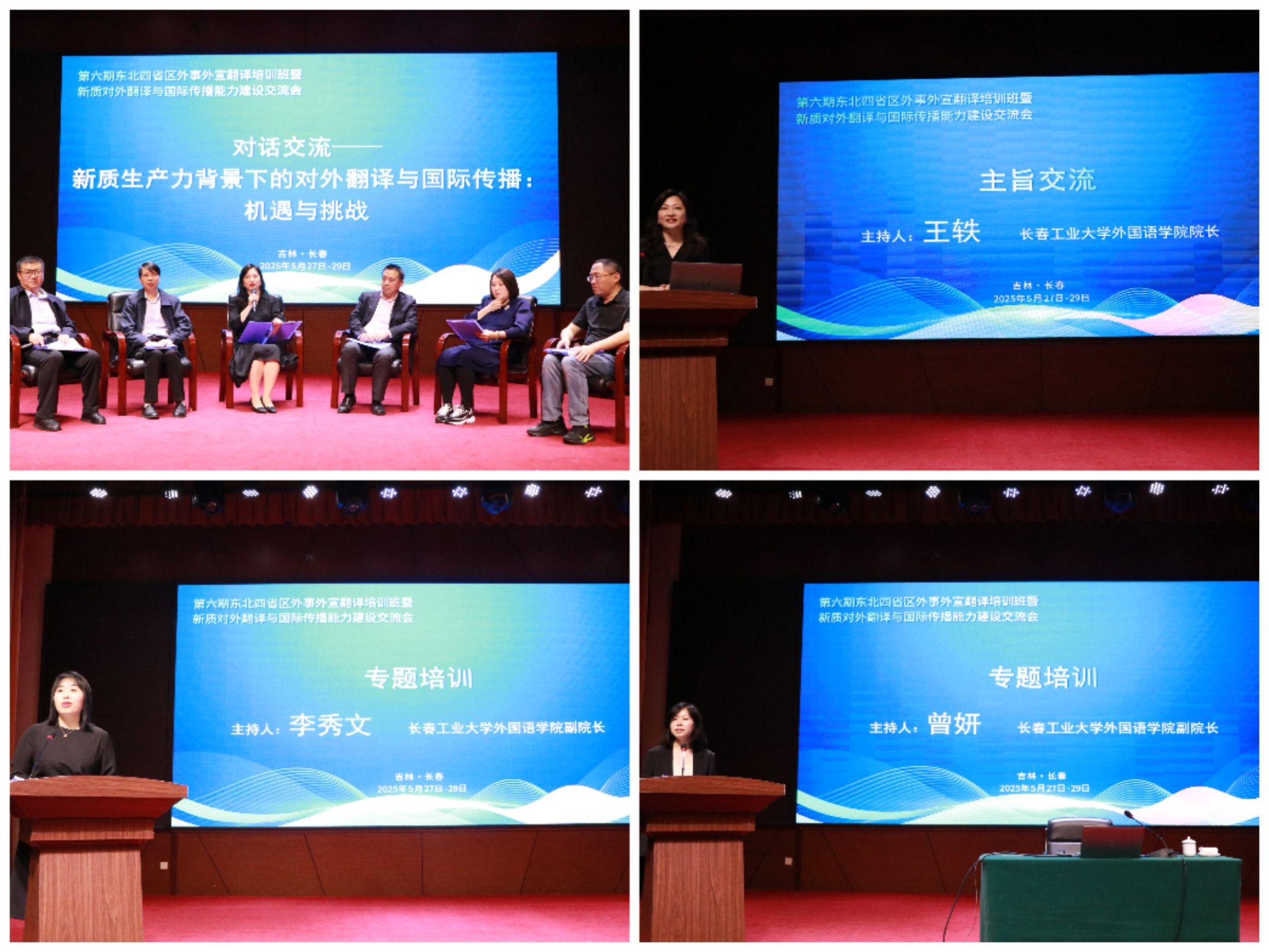 第六期东北四省区外事外宣翻译培训班暨新质对外翻译与国际传播能力建设交流会于5月29日圆满闭幕,会议为高校教师与相关领域专家学者创造了重要的学习交流机会,会上高水平的学术报告得到了与会学员的高度评价。此次会议既是对国家加强国际传播能力建设战略的积极响应,更是推动外语学科创新发展、服务新时代外宣大局的重要实践。为外事翻译学界的“新质赋能”搭建交流平台的同时,也为学校深入推进外语教育教学改革、全面提高人才培养质量提供了宝贵机遇。