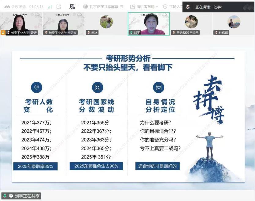 李冰首先致辞,对pg娱乐电子游戏官网入口pg娱乐电子游戏官网入口组织此次宣讲会表示热烈欢迎和衷心感谢。同时鼓励在线同学认真聆听、积极互动,充分利用宝贵机会做好考研准备。