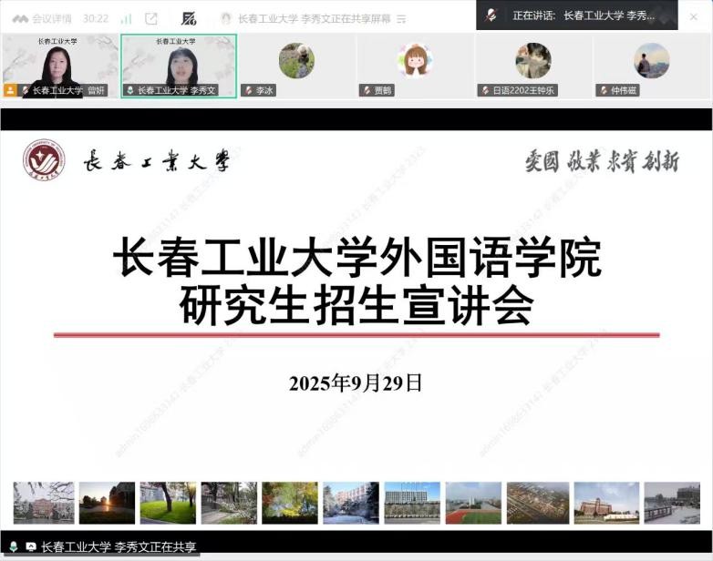 本网讯(通讯员 贾 鹤)为帮助学生明晰考研方向,破解备考信息差,9月29日,pg娱乐电子游戏官网入口pg娱乐电子游戏官网入口联合吉林化工大学pg娱乐电子游戏官网入口,举办了线上考研宣讲会。学院院长李秀文、副院长曾妍、英语系主任刘宇参加了会议,吉林化工大学pg娱乐电子游戏官网入口副院长李冰主持会议。