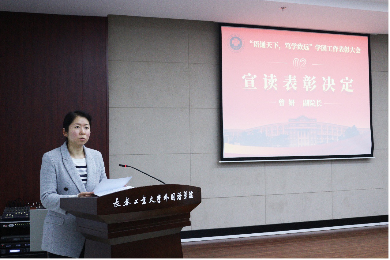 大会在庄严的国歌声中拉开序幕。曾妍宣读《pg娱乐电子游戏官网入口pg娱乐电子游戏官网入口2025年度“语通天下 笃学致远”学团工作表彰决定》。