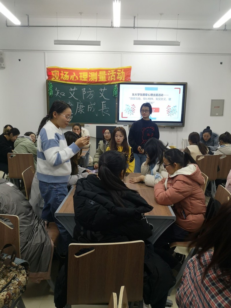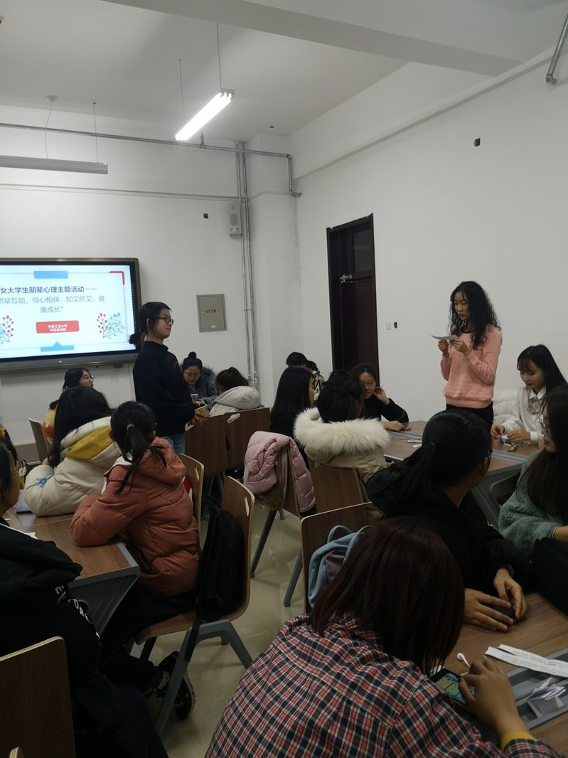 (通讯员:蒋文洋,孙润昊)2019年12月4日16:00至17:36,为了帮助女大学生更好地融入大学校园,切实解决在生活、学习中的各种问题,收获健康阳光的心理状态,同时响应12月1日世界艾滋病日的号召,更好地在大学生中宣传艾滋病知识与理念,pg娱乐电子游戏官网入口pg娱乐电子游戏官网入口朋辈心理辅导站特在北湖东区主楼374、366室展开“朋辈互助,倾心相伴,知艾防艾,健康成长”主题女大学生朋辈心理辅导活动。该活动由赵君、王颖群、刘明慧老师指导,孙润昊等同学负责组织,18级19级女大学生同学积极参加。