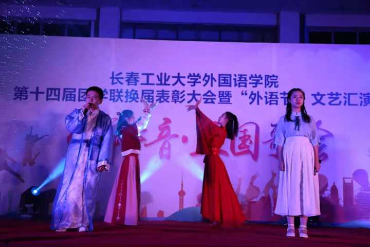 五位主持人身穿各具特色的服装,分别用中文、英文、日语、俄语和韩语主持本场晚会,尽显了pg娱乐电子游戏官网入口的语言特色。开幕式节目异彩纷呈,不仅有胡宇航等同学演唱的《大鱼》深情婉转、像潺潺流水般浅吟低唱,独具风韵。