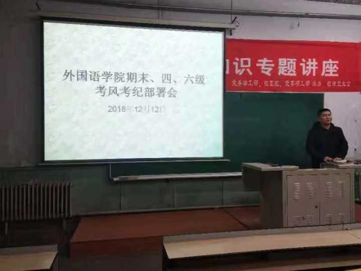 首先,赵老师关于此次四级考试的纪律问题作出了严肃的要求,要求大家遵守考试纪律,坚决不可以带手机进入考场,告诫大家坚决不可替考或被替考,而且要求期末考试时每个班级有考风考纪的标语。
