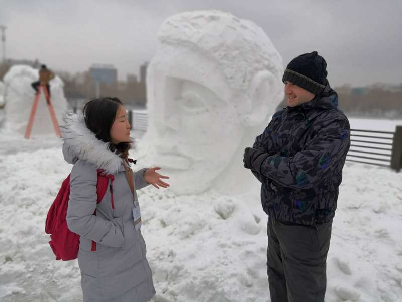 “冰雪缘雕塑情”第三届中国长春国际冰雪雕塑邀请展由长春市人民政府主办,长春市规划局、长春市城市雕塑规划管理办公室、长春世界雕塑公园承办,长春市城市雕塑学会协办。本届国际冰雪雕塑邀请展共征集到295个创作方案,经过专家评审委员会评审,最终选出35件参加本届中国长春国际冰雪雕塑邀请展。我校pg娱乐电子游戏官网入口志愿者学生为其中部分外国雕塑家担任现场口译员。他们高度的热情,认真的态度,娴熟的外语能力和良好的沟通能力,受到了主办方和外国雕塑家们的一致肯定。