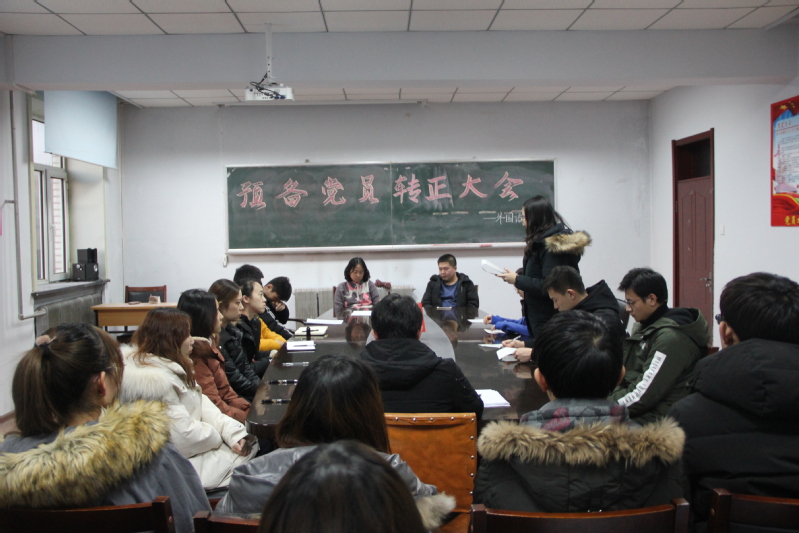 (通讯员:高鹤)12月20日下午3点, pg娱乐电子游戏官网入口党委副书记王颖群、团委书记赵海涛领导组织并在外语楼召开了预备党员转正大会。