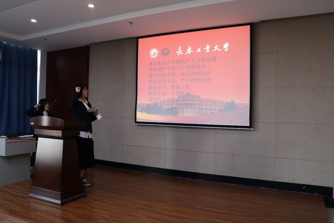 入团不只是形式,团徽也不只是标志,它们应该成为团员在学习和工作中鞭策自己进取的一个标准。大会伊始,各班团支部书记庄严宣读了入团誓词,深刻体会了作为一名团员的神圣使命。在学习交流中,各团支部书记也积极对成绩清单、问题清单、荣誉清单以及日后根据现存问题的改正措施进行了汇报总结,明确了以后的学习和工作方向。交流了各成员在工作上的宝贵经验,进一步巩固了团组织纪律与素质。