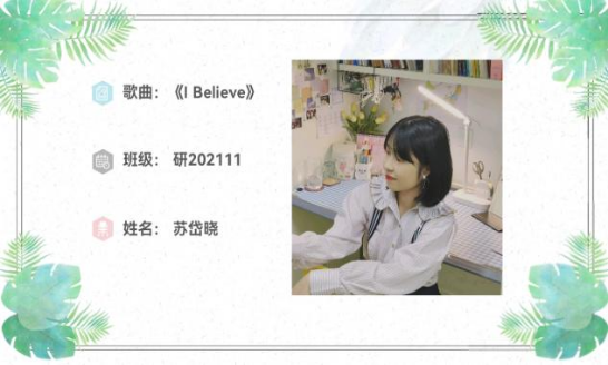 下面,让我们一起来领略一下,获得一等奖的五位同学演唱时的风采与选曲感想吧!