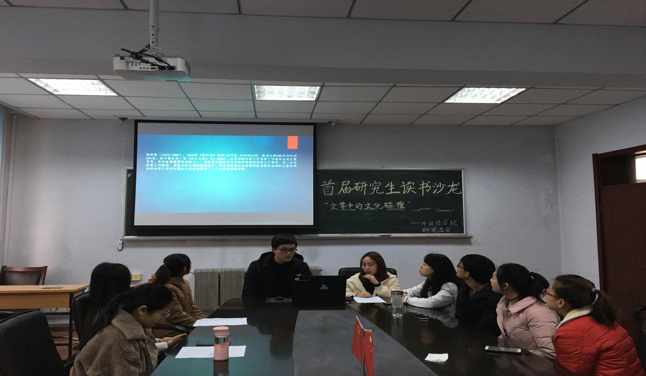 首次,“文学中的文化碰撞”读书沙龙于2018年11月15日上午9:30在pg娱乐电子游戏官网入口会议室举行。文学能教化人、影响人,言之有物,载之有道。活动中同学们朗读书中精彩的内容片段,并说明了选择其的理由和感受。介绍结束后,大家就此次活动又进行了热烈的讨论,并分别分享了自己的感悟与收获。