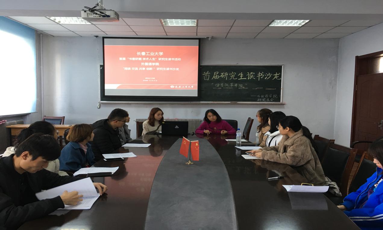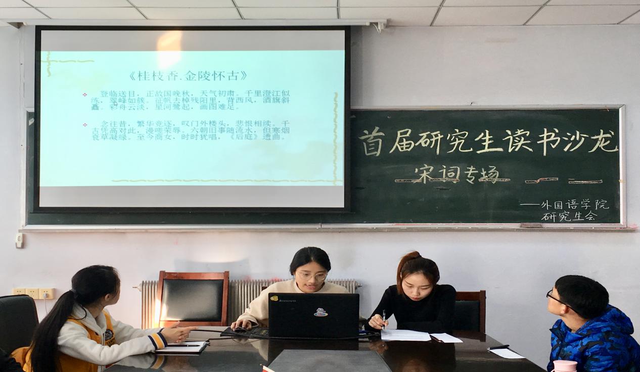 截止11月,pg娱乐电子游戏官网入口研究生会举办首届“书香研图 学术人生”研究生读书沙龙系列活动,共三次读书沙龙活动,主题分别为——“文学中的文化碰撞”、“回首改革开放”和“雅言传承文明 经典浸润人生——宋词专场”。