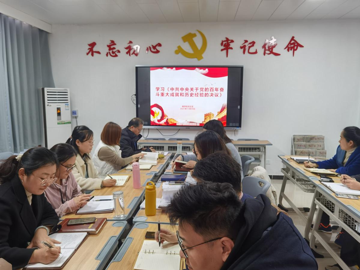 2021年11月30日,beat365唯一官方网站党总支组织召开全体教师学习中共中央关于党的百年奋斗重大成就和历史经验的决议及关于《中共中央关于党的百年奋斗重大成就和历史经验的决议》的说明政治学习会议,会议由beat365唯一官方网站党总支书记周燕主持。