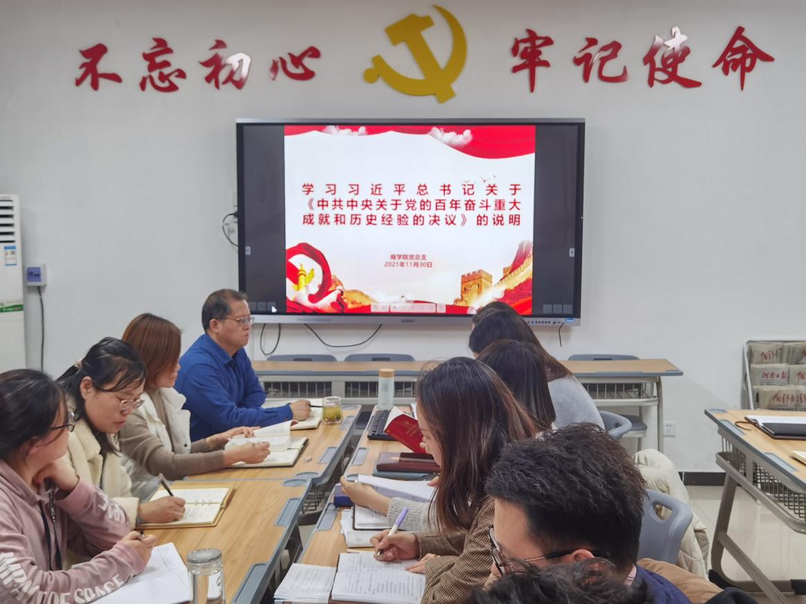 beat365唯一官方网站党总支组织全体教师学习《中共中央关于党的百年奋斗重大成就和历史经验的决议》及习近平关于《中共中央关于党的百年奋斗重大成就和历史经验的决议》的说明