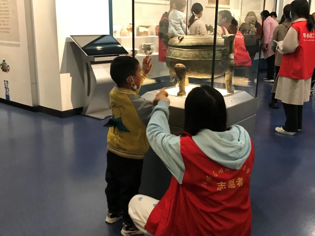 志愿者们带着孩子们参观了博物馆内的各个展览区,跟随导游聆听博物馆内各个文物的起源和发展。在参观的过程中,志愿者们与孩子们的关系更近了一步。