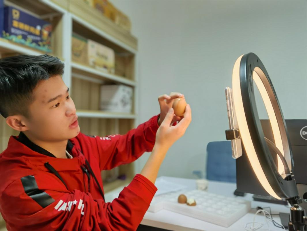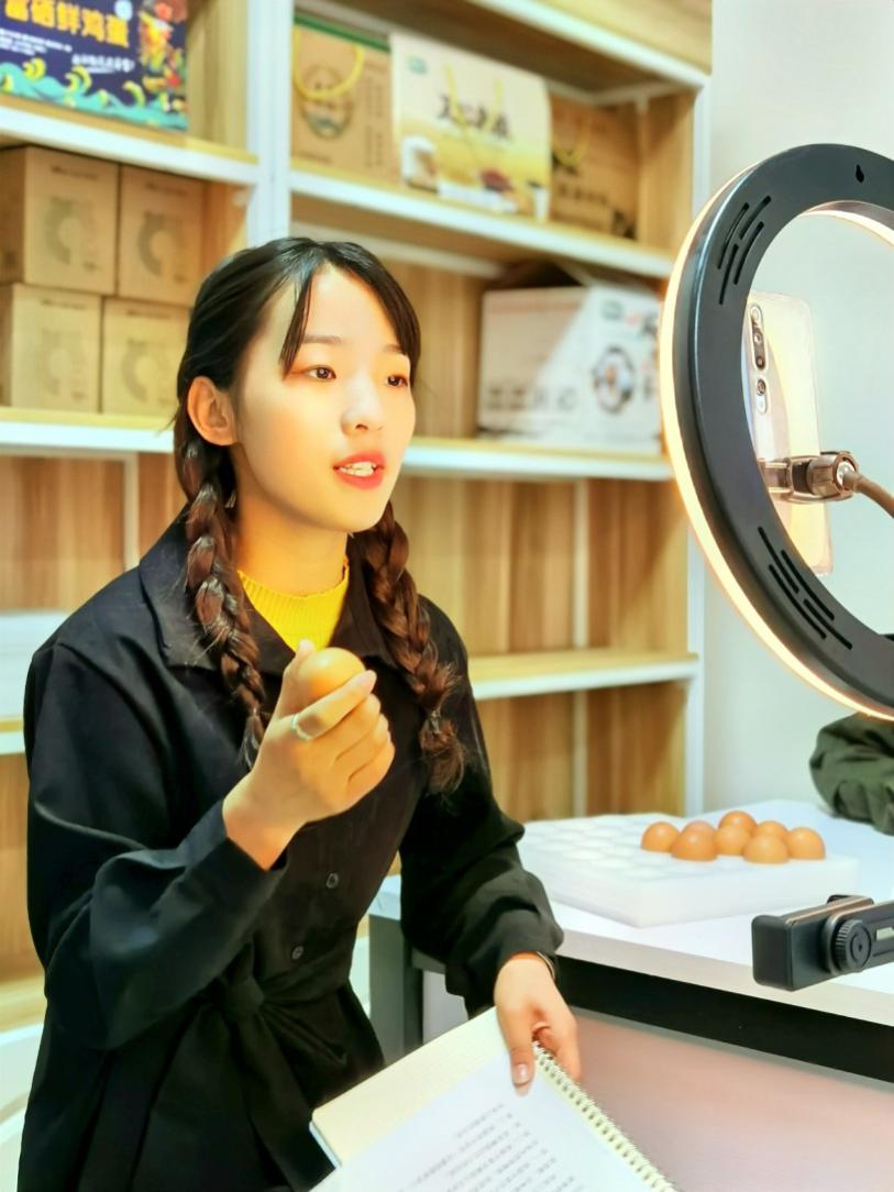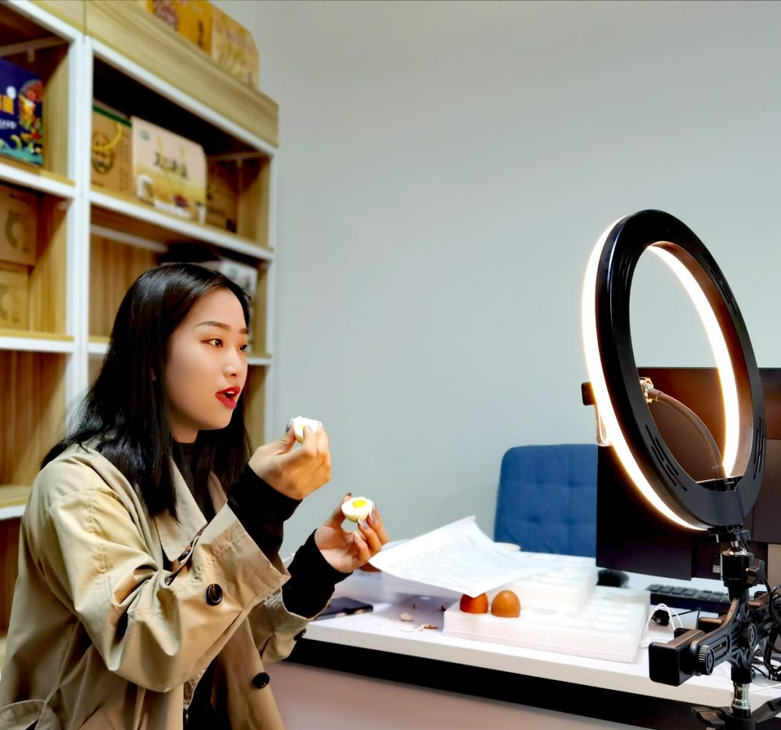 来自电子商务、市场营销、连锁经营等专业的11名新人主播,正在2号实训楼进行直播实践,本次带货的产品是正大集团的富硒鲜鸡蛋,主播们从企业背景、产品卖点、食用方法、营养价值等多方面为顾客介绍产品,很多主播虽然是第一次上播,却能流利地介绍产品,亲切与粉丝互动,并回答粉丝提出的各种问题,把控直播节奏。