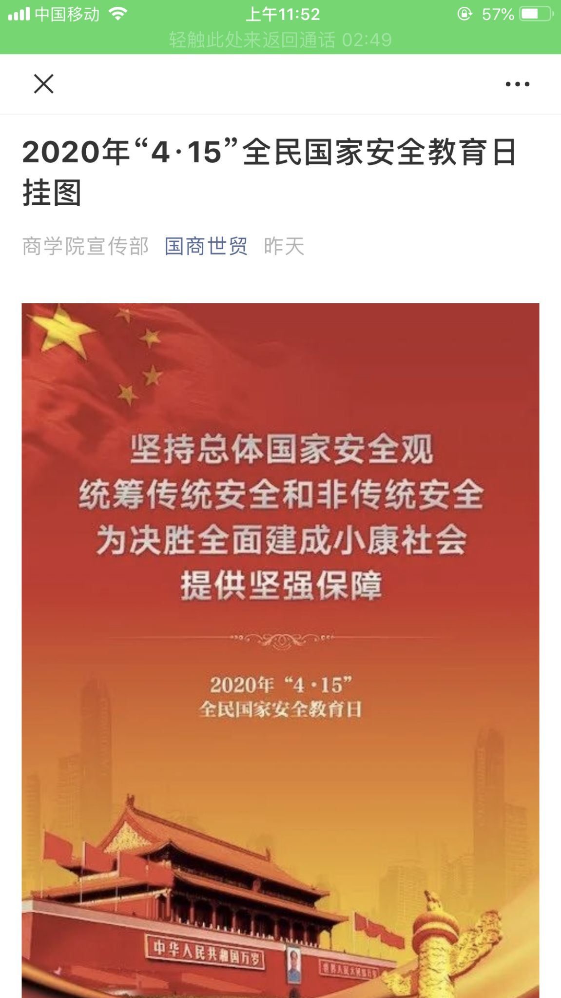beat365唯一官方网站通过多种线上平台积极宣传“全民国家安全教育日”相关知识,切实加强全体师生的国家安全意识,提升师生维护国家安全的自觉性和主动性。通过微信公众号加大推动力度。