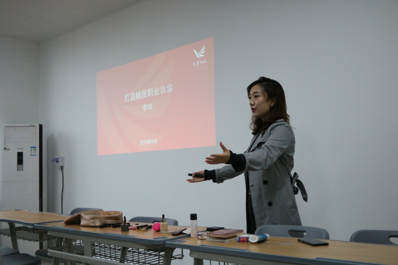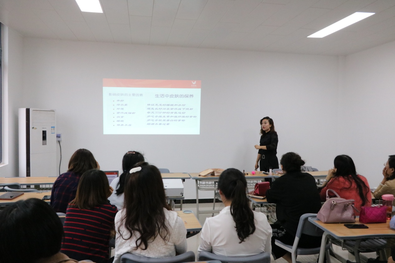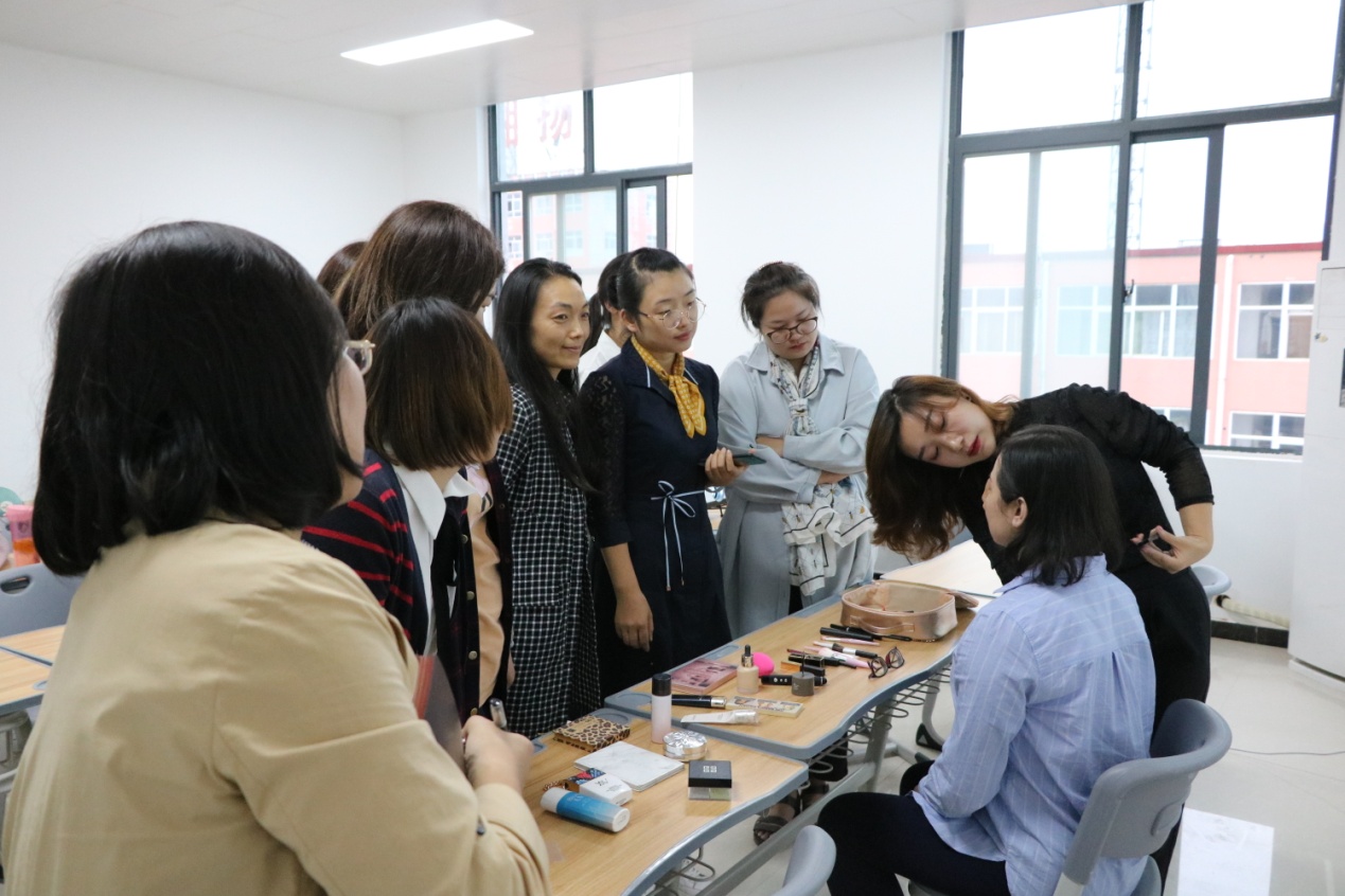 随着现代化的发展,职场妆容显得越来越重要。作为高校教师,精致的妆容不仅为自己的职业形象加分,更能在课堂上塑造端正靓丽的教师形象。2019年9月17号下午,校企合作企业东方领航班李琼老师,在办公楼504为beat365唯一官方网站的女教师带来了一场别开生面的形象打造课,李琼老师不仅分享了自己的化妆心得,还在现场演示了娴熟的化妆技巧,引得众多女教师连连赞叹。