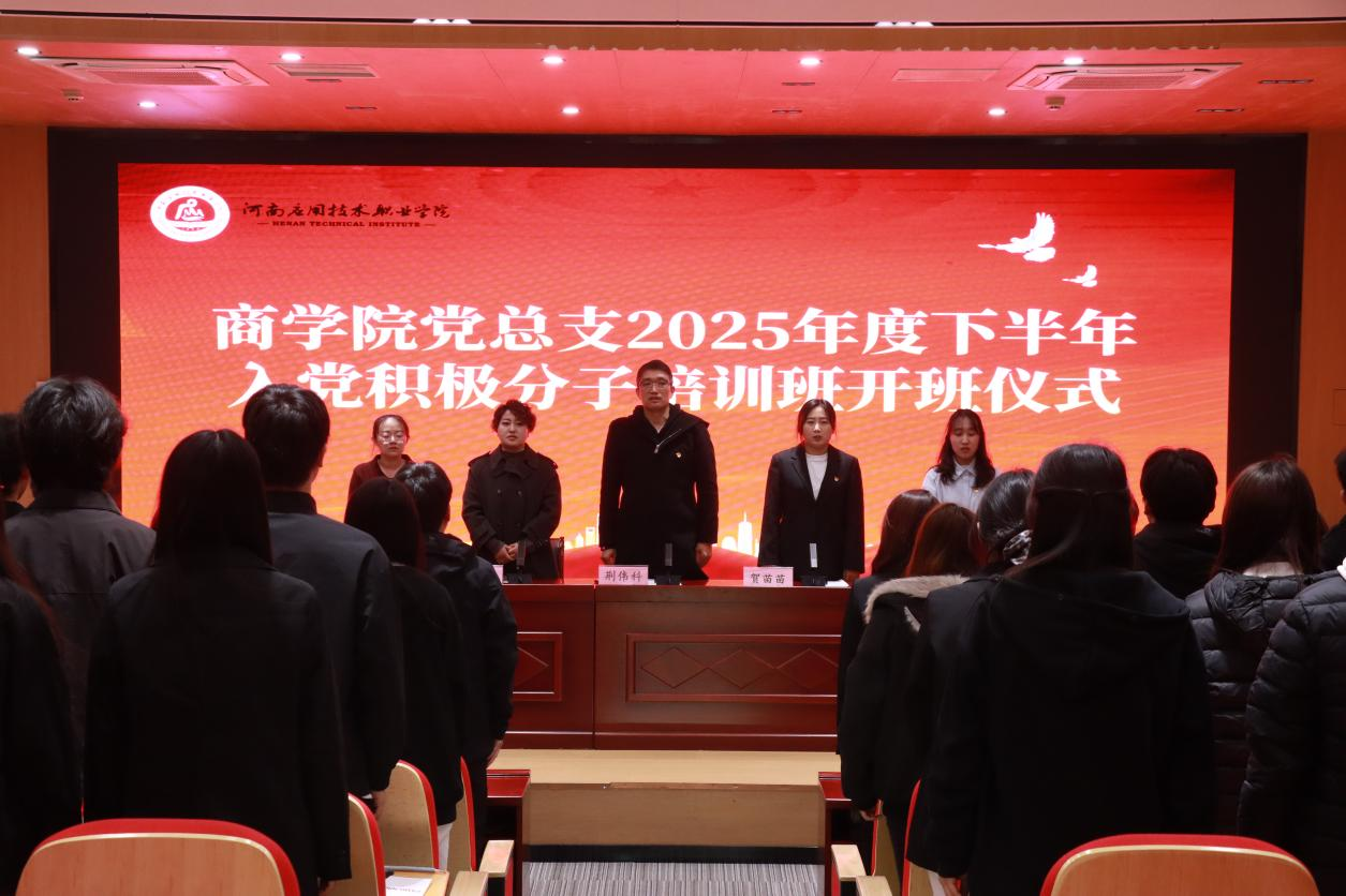 为加强入党积极分子队伍建设,筑牢青年学子信仰之基。11月10日,beat365唯一官方网站党总支在教学楼D102举行2025年度下半年入党积极分子培训班开班仪式。党总支书记荆伟科及学院相关教师出席会议,会议由党总支组织委员贺苗苗主持。