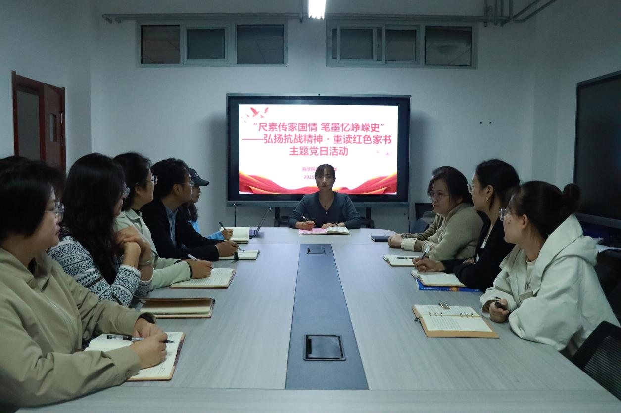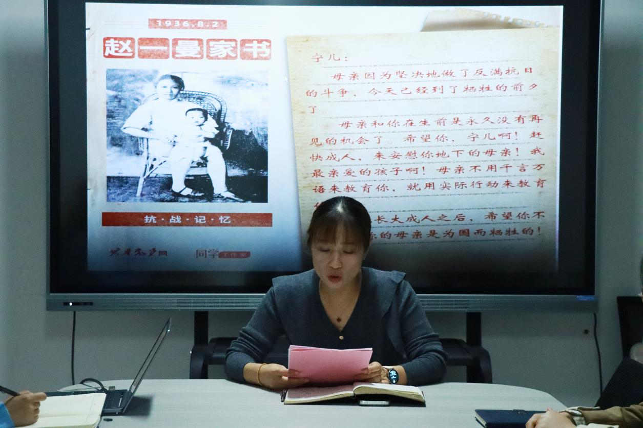 为深入引导beat365唯一官方网站学工党支部党员教师从红色家书中汲取精神养分、厚植家国情怀,9月23日,beat365唯一官方网站学工党支部以“尺素传家国情 笔墨忆峥嵘史”为主题,开展弘扬抗战精神・重读红色家书主题党日活动,本次活动由党总支副书记王倩主持,学工党支部全体党员教师参加。