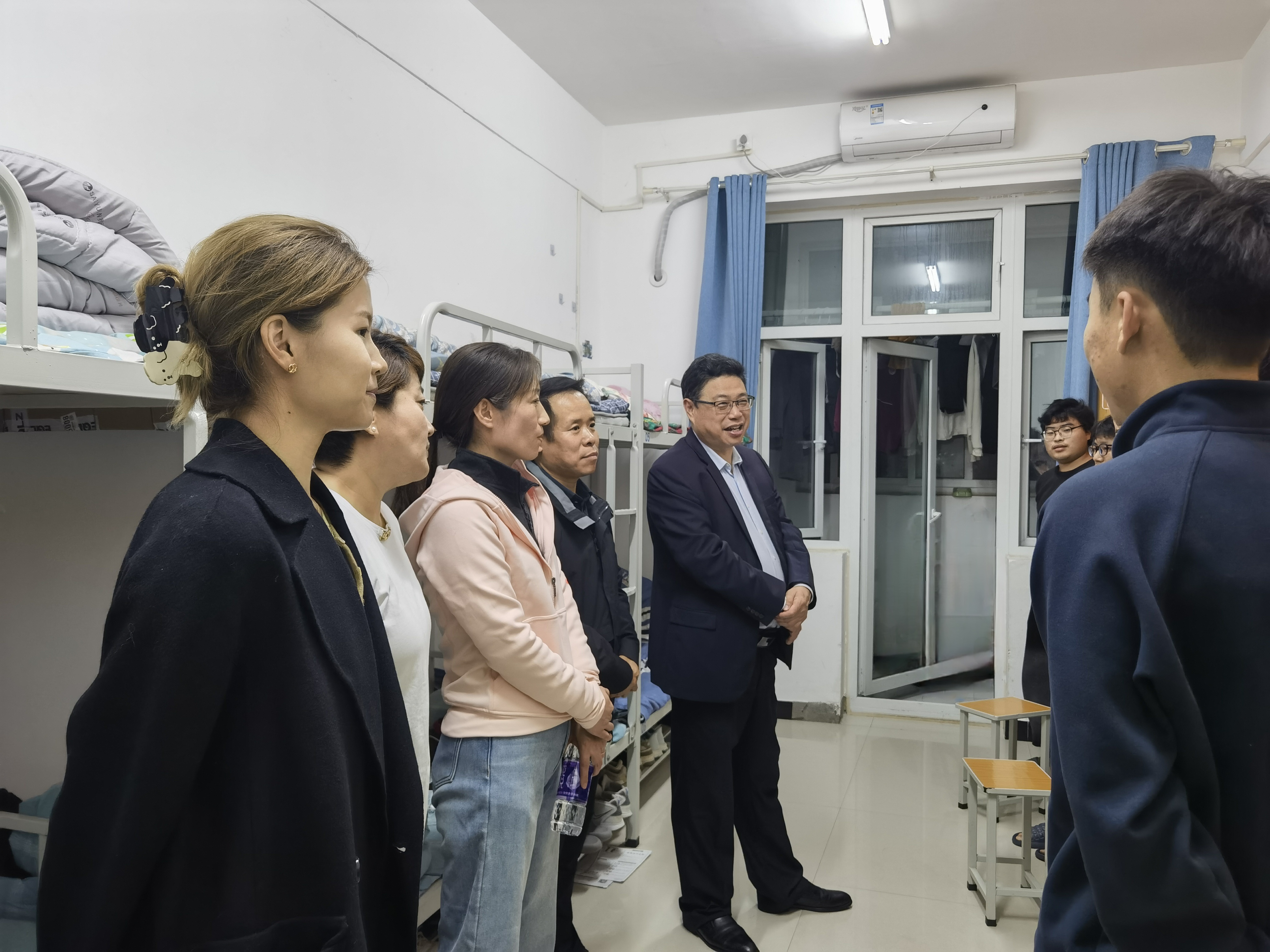 魏新华来到学生宿舍,与同学们进行面对面的亲切交流。他详细询问了同学们的学习生活情况,特别关注了大家在校的学习状态和身心健康。魏新华表示,学校一直把学生的成长成才放在首位,希望同学们能够充分利用学校提供的资源和平台,努力学习,提升自我。