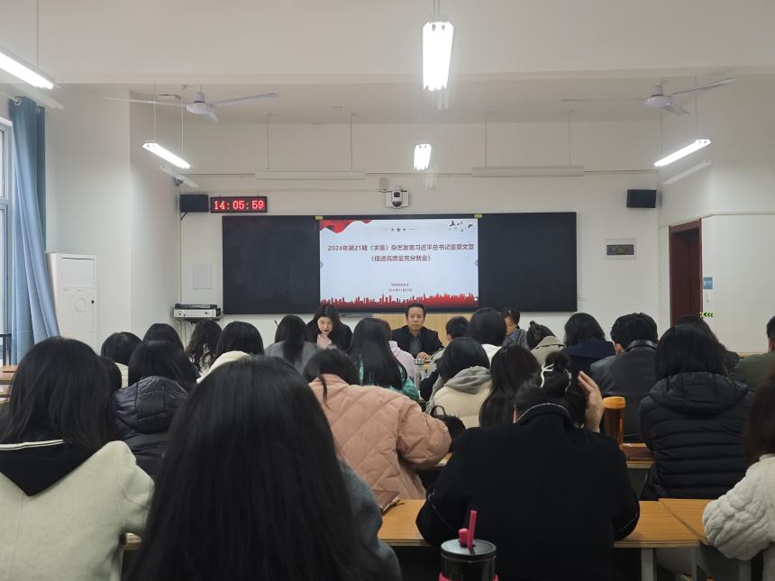 会上,刘嘉慧带领大家学习了2024年第21期《求是》杂志发表的习近平总书记重要文章《促进高质量充分就业》。文章深刻阐述了高质量充分就业的重要意义,提出了促进就业的一系列政策措施。教师们纷纷表示,要深刻领会文章精神,将促进高质量充分就业的理念融入教育教学工作中,为培养更多适应市场需求的高素质人才贡献力量。