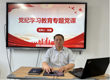6月6日,beat365唯一官方网站党总支教工党支部书记孙勇在郑州校区办公楼504为beat365唯一官方网站全体教师讲授党纪学习教育专题党课。本次专题党课以“学党纪,强党性,明底线,守规矩”为主题,旨在引导教师们深入学习党的纪律,强化党性修养,明确行为底线,严守党的规矩。